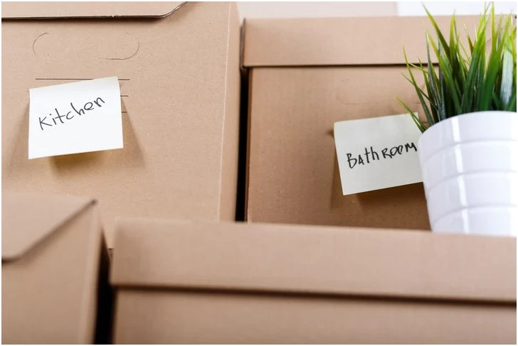 If you only have plain coloured post-it notes handy, you can still easily reference what is inside the box by labelling them with rooms of the house.